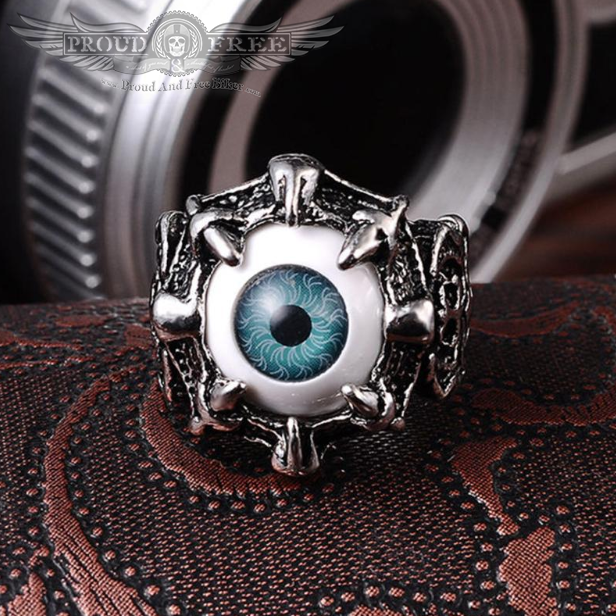 These grotesque yet beautiful rhinestone demon eyes—on settings with skull claws, talons or teeth—are as biker badass as it gets.